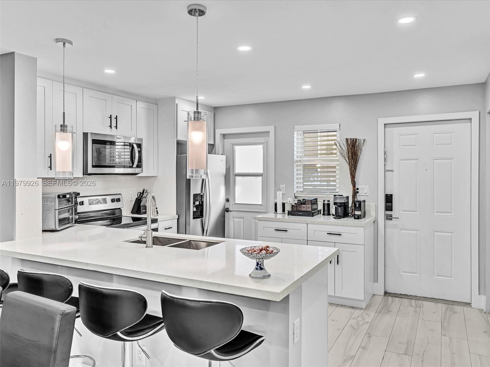 LOW MAINTENANCE FEE!. ASSESSMENT PAID OFF. Enjoy modern living in this COMPLETELY REMODELED & SPACIOUS 1-bedroom, 1.5-bath condo in the heart of Hallandale Beach! This elegant unit boasts IMPACT WINDOWS and DOORS—a large kitchen with wood cabinets & quartz counters. THE REMODELING, EQUIPMENT, AND APPLIANCES ARE ABOUT 2 YEARS OLD. Relax on the screened balcony overlooking the pool area. Enjoy ample closet space, additional 4x6 storage, and the convenience of a washer and dryer steps away. Located just minutes from the Beach, this condo offers easy access to shopping, fine dining, and entertainment at the renowned Gulfstream Village & Casino. This property is also conveniently close to airports, hospitals, shopping centers, and more. This unit is available furnished, making it a turnkey opportunity for buyers.