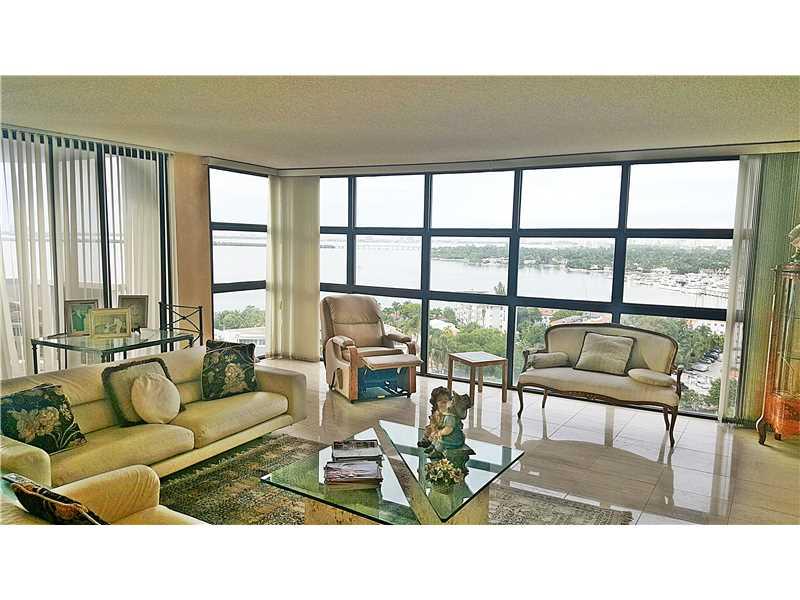 Breathtaking views from all rooms of this large corner apartment. Huge balcony overlooks Biscayne Bay, Belle Isle park, Marina & Downtown Miami. Ready to remodel at your taste and make it your dream home. Enormous closets in both bedrooms. Master bath has Roman tub, shower. Additional storage room on same floor. Building amenities include gorgeous heated pool & koi ponds, tennis courts, gym, bbq, restaurant, docks.