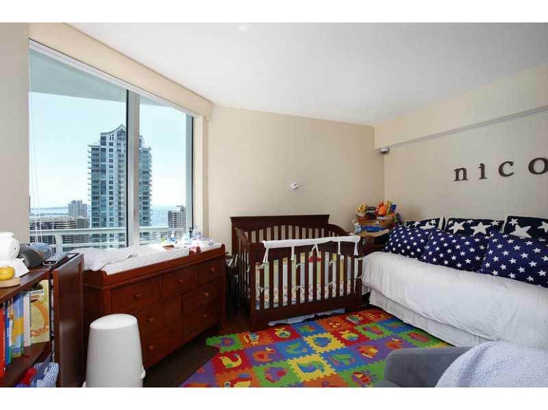 Amazing water views in this upgraded 2 BR/2 BA luxury unit, California closets, marble and wood floors, elegant window treatments and electrical shades in living room. Stylish kitchen and baths. Brand new washer/dryer/microwave. 5 star amenities in this luxury building such as spa, pool, business center, gym and valet. Located in booming downtown area, Whole Foods & cinemas will be located one block away within 18 months. Upscale Il Gabbiano italian restaurant located in building's first floor.