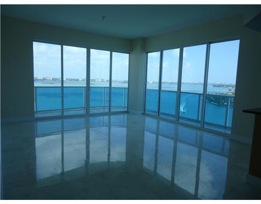 Beautiful corner with wraparound balcony directly facing the water. Stunning bay, city and ocean views from this 21st floor condo featuring marble floors throughout, open kitchen with granite counters and S/S appliances, bar in the living room. This luxu ry building features bayfront pool, hot tub, gym and a party room. Views from both bedrooms and plenty of closet space.