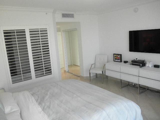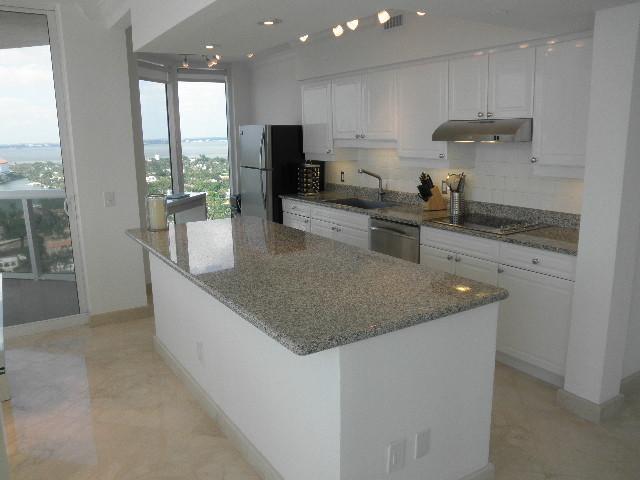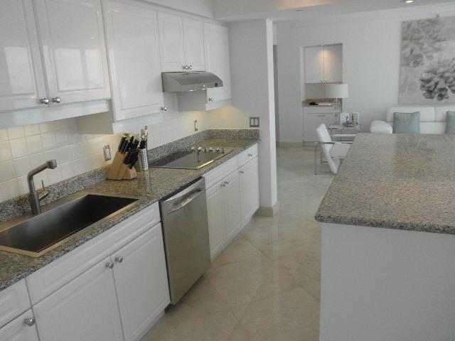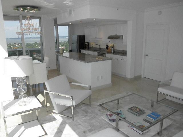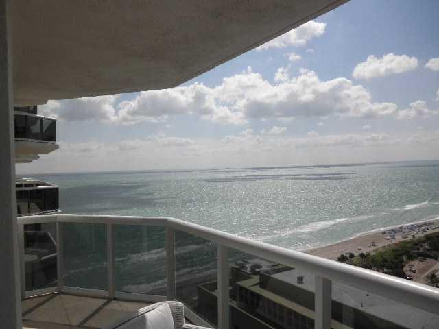 Stunning corner unit with ocean, bay and skyline panoramic views through floor to ceiling windows. Open kitchen with granite on white lacquer cabinets & stainless appliances. Dining-area chandelier EXCLUDED. Upgrades to master bath. Wet bar in living room , marble flooring throughout. Great security & amenities including beachfront pool, spa/gym, tennis, cafe, valet parking, beach services more. Shown by appointment. You will be impressed!