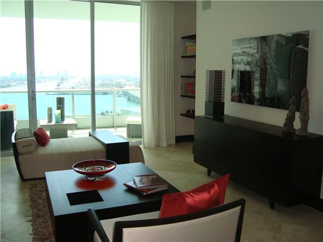 Motivated sellers, bring offers!! Upgraded unit with unobstructed sunrise & sunset views on the 24th floor. Biscayne Bay flow through views. 2 bedrooms PLUS DEN and has 3 full baths. Authentic marble floors, White granite kitchen with Subzero and Meile, 1 0' ceilings, surround sound speakers in each room, built in closets throughout. Private elevator & foyer plus separate service entrance. VERY EZ to show call listing agent and same day showings are ok.