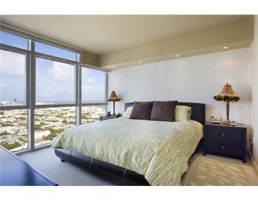 Icon South Beach-high floor. 1/1.5 apartment with panoramic views of Ocean, Bay and South Beach. Completely remodeled and upgraded with white porcelain floors, custom wood built-ins throughout the living room and finest mosaic in the bathroom. Stainless s teel appliances, custom made closets. High end amenities include 2 pools, restaurant, spa and gym. Furniture negotiable.