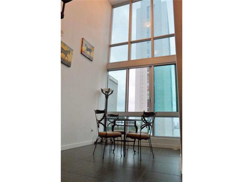 Fabulous water views from this 19'4" high ceiling Loft with porcelain tiles throughout. East exposure, 1 bedroom, 2 full baths, Italian cabinetry, granite counter tops, stainless steel appliances, washer and dryer in unit. Amenities include Water Exercise Room, Rooftop Pool, Free Cable and Internet. Great location, close to everything and next door to new Whole foods. Unit comes with one assigned parking space!!
