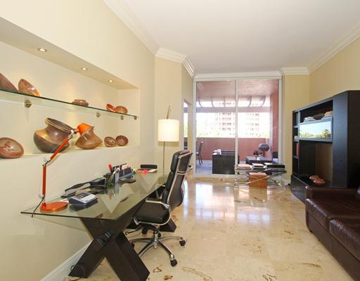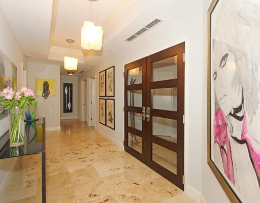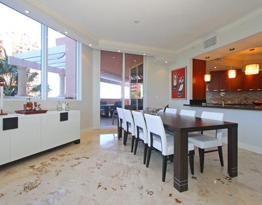 Beautifully reconstructed & decorated w/in the past year, this corner unit has spectacular walls of glass & 10' ceilings & view of downtown Miami. Expansive gallery foyer leads to large great rm for entertaining. Superb island kitchen w/fine wood cabinet ry & granite countertops opens to dining rm as well as breakfast rm. Huge oversized terraces provide private outdoor living rm & dining area. Split bdrm plan w/luxurious master w/lrg bdrm & wood flrs, beautiful marble bath salon & huge his/her closets.