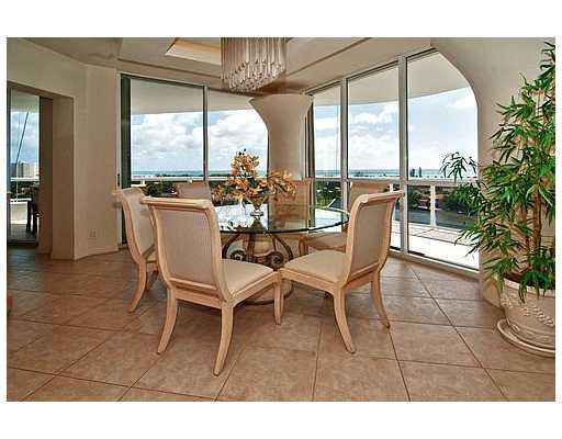 AMAZING 2BR + DEN (DEN EASILY SERVES AS THIRD BEDROOM), 2.5 BA SOUTHEAST CORNER UNIT. PRIVATE ELEVATOR TO THE 9TH FLR OPENS TO STUNNING VIEWS OF THE INTRACOASTAL & OCEAN. CERAMIC FLRS, BUILT-INS, WALK-IN CLOSETS, LAUNDRY RM, HUGE WRAP AROUND BALCONY CAN B E ACCESSED FROM EVERY RM. 2-ASSIGNED PARKING SPACES IN GARAGE + 1 STORAGE BIN INCLUDED. CONDO OFFERS 2 HEATED POOLS, TENNIS, 24-HR SECURITY, VALET & LARGE GYM. GREAT OPEN FLOOR PLAN.