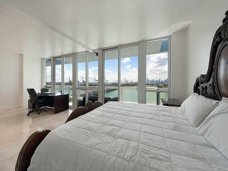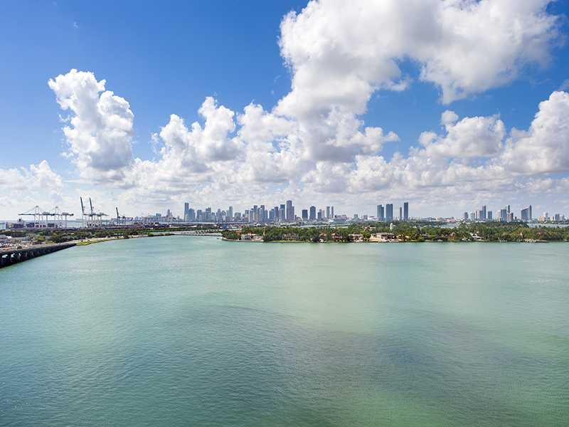 Incredible views! Once you enter you are drawn to the 180 degree, direct Bay/Downtown/Islands views made much wider due to removed bedroom wall. Can be left open, sliding doors installed, or wall can be reinserted. Kitchen has been opened, bathroom elegan tly renovated to include a humongous shower, and new marble floors throughout. Only 4 condos on the floor.