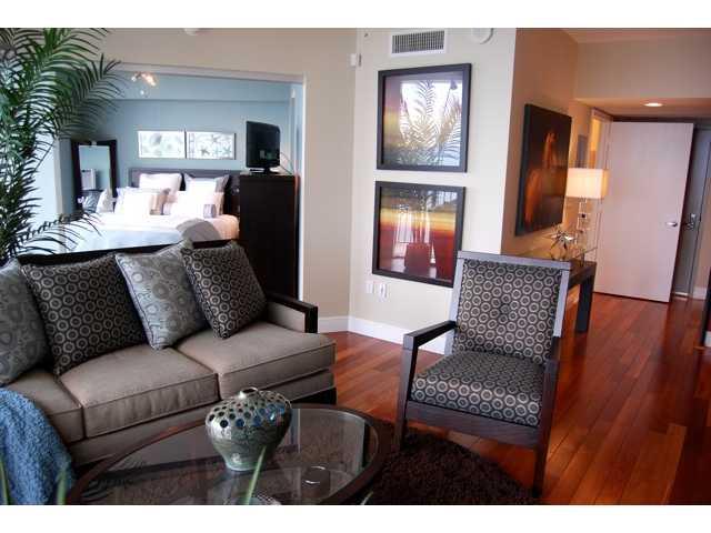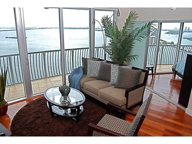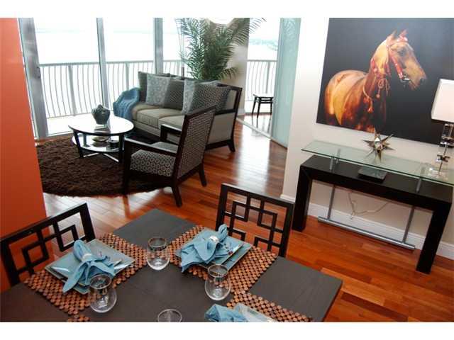 Welcome home! This stunning skyhome features floor-to-ceiling glass walls with direct bay & ocean views- your new home is drenched in natural light & has gleaming hardwood floors, onyx backsplash & a huge master suite with walk-in closet & upgraded bathr oom. Sliding glass partitions open up to 2nd bedroom expanding living area and views. A huge terrace extends the entire length of the condo - AMAZING! Located in Performing Arts District- onsite dining, sundry store, salon & recreational park in front.