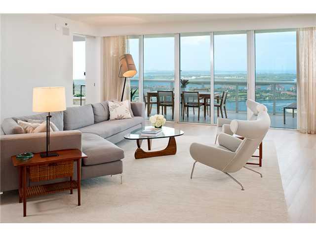 Immaculately renovated flow through penthouse offers nearly 360 degree panoramic views of the ocean, bay, South Beach, Fisher Island and Miami skyline from 2 oversized private terraces. Designer finishes include imported Italian hand crafted oak flooring, Blue Macauba quartzite island, custom teak cabinetry, and custom Bergamo fabrics. This 3 bedroom masterpiece boasts a private elevator foyer and gourmet kitchen. Complete with state of the art Creston for audio, video and solar shade control.