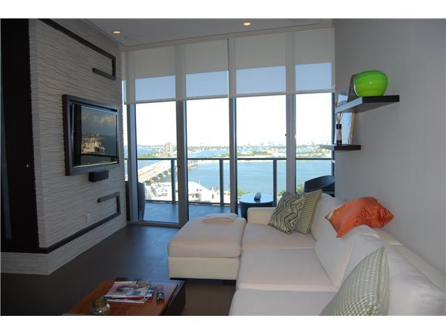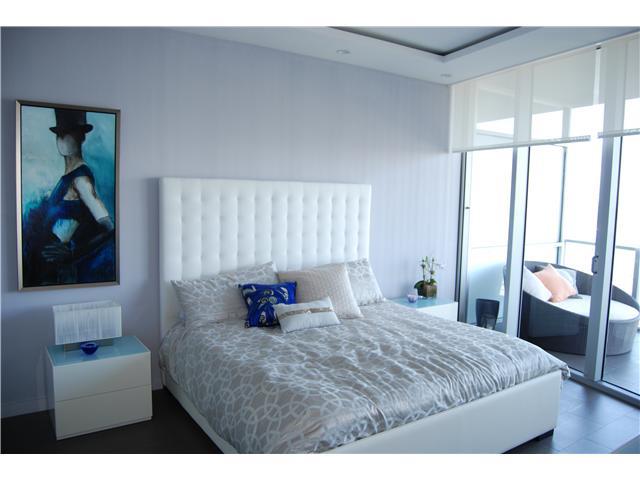 Exquisite Direct Bay View 23rd Floor, 2 Bedroom at the Marquis Luxury Condo. Custom Designer interior with built-in closets and cabinetry, 12" X 22" Designer tiled floors, drop-ceiling with LED mood lighting, speakers & Surround Sound System, Wine Cooler, Viking appliances, black-out blinds and Solar shades. Built-in Home Theatre with Samsung 55" LED TV and custom stone wall in Living Room. Separate 2nd Bedroom Entrance from Designer Foyer with hidden doors. Many custom additions that make this Exquisite.