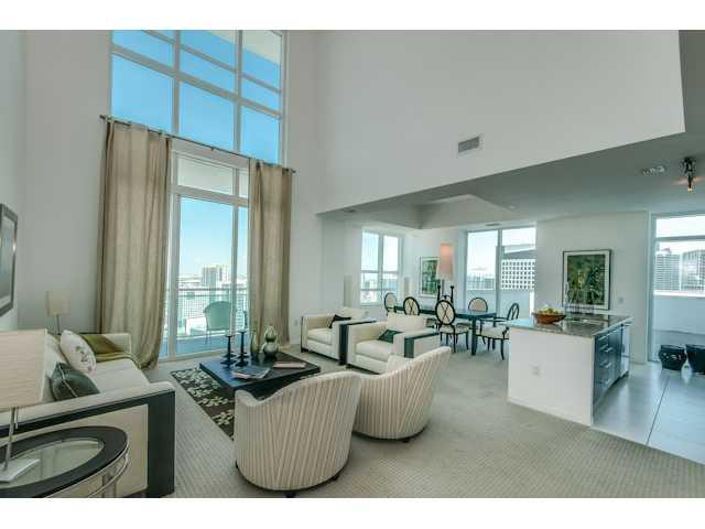 A RARE AND UNIQUE TWO STORY PENTHOUSE IN THE SKY. THIS IS YOUR OPPORTUNITY TO OWN A PIECE OF THE BRICKELL SKYLINE. THIS FULLY FURNISHED 3 BEDROOM 3 AND A HALF BATH PENTHOUSE HAS IT ALL. ENTER THROUGH A FORMAL FOYER INTO A SPACIOUS LIVING WITH 20 FOOT CE ILING WITH A GLASS WALL OPENING OUT ONTO A HUGE GLASS BALCONY. THE OPEN KITCHEN REPLETE WITH STONE COUNTERS AND SUB-ZERO, BOSCH APPLIANCES COMPLEMENTS THE FORMAL DINING ROOM WHICH OPENS ONTO A PRIVATE SKY TERRACE.