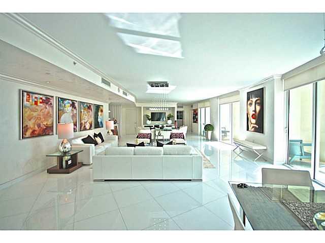 The Jewel of St Tropez, Venetian Plaster, Furnished by ArteCity Design, facing South East towards Intracoastal this 3,813 square foot space has a uniquely spacious living area, full length hurricane impact patio sliders opening along the unit, built in sp acious closets, top end finishes. This is a model unit and price includes all finishes and furniture. Low maintenance fee includes Turnberry Beach Club membership.