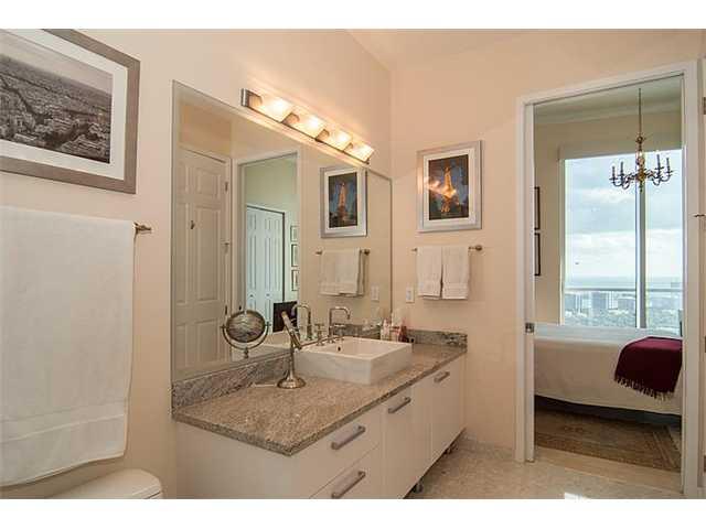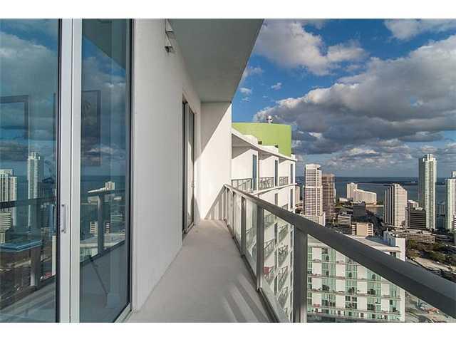 Beautiful 1Be + Den/1Ba Penthouse o/t 44th floor. Excellently finished. Italian Snaidero cabinets in kitchen and bath, Premium grade travertine floors throughout, Baseboard and crown moldings, Closet shelving in bedroom, linen and hall closets, 12 Ft Ceil ings and Floor-to-Ceiling Sliding Glass Doors leading to a spacious balcony ,Amazing views! Designated parking space included.