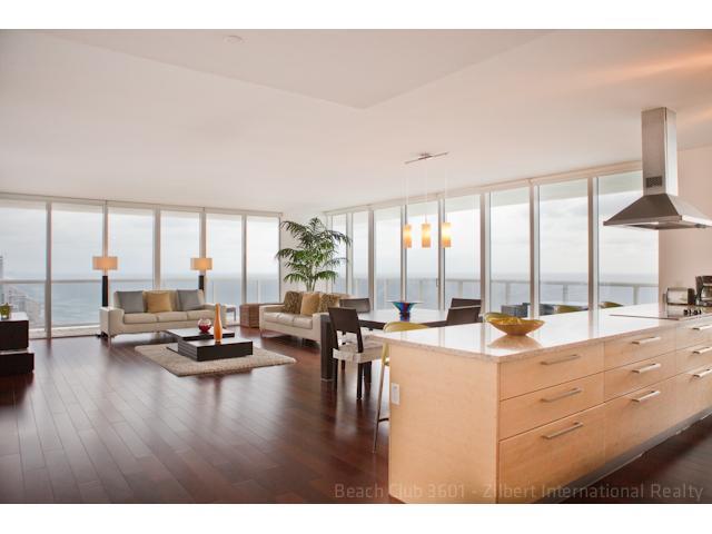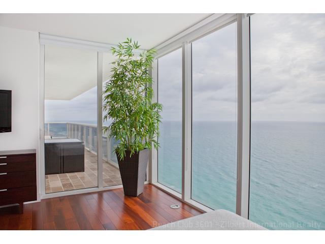Unit 3601 is located in the NORTH - EAST corner of building with DIRECT OCEAN VIEWS. Featuring over 2060 SQ FT of living area & 450 SQ FT of wrap around balconies, amazing Brazilian cherry wood floors & marble on the balcony, custom made walk in closets, window treatments, modern furniture & decoration. This 3 BED/3 BATH is your house in the sky! Professionally designed, with capacity for family of 5 to 6p. 1 assigned parking space. Perfect for snowbirds & family vacations. Call LA!