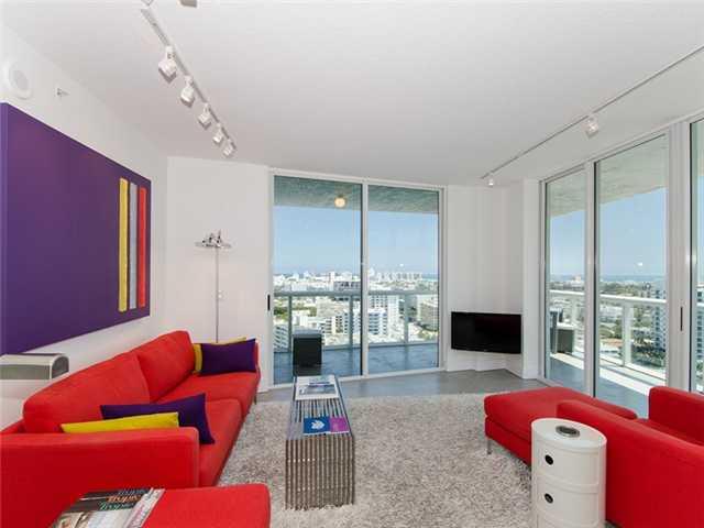 Beautifully completely upgraded turnkey unit. Just 2 blocks from Lincoln Rd & steps away from the famed Standard Hotel & resort..Walk to all of the hottest spots in town! Enjoy breathtaking panoramic views of South Beach, Biscayne Bay & Ocean. An immens e wrap terrace makes this unit feel HUGE! This boutique luxury building has a full time conceirge,security, tennis court, pool, and gym. Pets OK