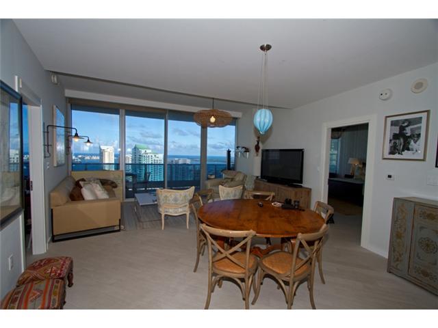 One of a kind "Palace in the Sky" - Dramatic Ocean, Bay and River Inlet Views from this 44th Floor Beauty. Higher ceilings than in other floors. Oversized parking space. Full Service 5-Star Building offering excellent amenities including a state-of-the -art gym and gourmet restaurant. Great location!