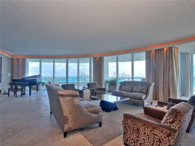 THIS FABULOUS ULTRA-MODERN UNIT WITH DESIGNER UPGRADES OFFER NOTHING LESS THAN SPECTACULAR COMFORT AND VIEWS FROM EVERY CORNER OF THIS MANSION IN THE SKY. OPEN LAYOUT WITH FLOOR TO CEILING GLASS, PRIVATE ELEVATOR THAT OPEN INTO YOUR OWN LOBBY, EXTRA DEEP TERRACES TO ENHANCE THE OUTDOOR LEAVING AND VIEWS OF THE BAY, FISHER ISLAND, MIAMI SKYLINE, MIAMI BEACH MARINA, CITY AND BEACH ARE COMPLEMENTED BY ONE OF SOUTH BEACH BEST KNOWN AND MOST LUXURIOUS CONDO RESIDENCES "THE MURANO AT PORTOFINO".