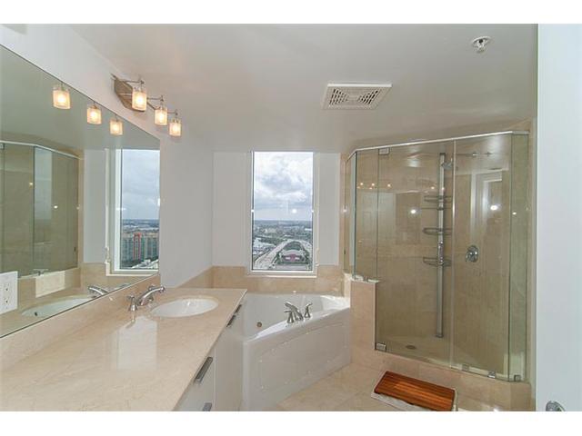 Breathtaking views the moment you step in. Corner unit has floor to ceiling windows in every room of this spacious home. Excellent natural light. This residence has been upgraded with superior features. Beautifully integrated kitchen with dark wood cabine ts. Miele and Sub-Zero appliances. Large white countertops host your guests at the kitchen bar. Owner meticulously added matching marble to every space throughout. Don't miss an excellent opportunity at La Perla! Call today, easy to show.