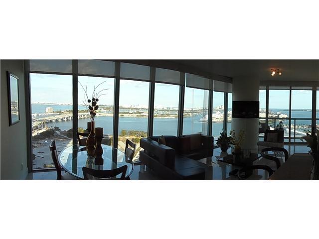 MarinaBlue. The coveted "08". Absolute best view in the building. Floor to ceiling windows for a 180 degree view north to midtown south to downtown Miami. Beautiful views of SoBe, Biscayne Bay and the Miami Skyline. Unit features marble and hardwood floors, stainless steel and granite kitchen, custom closets and motorized window treatments. Building amenities includes 24 hour security, valet parking, two swimming pools, putting green, fitness center and beach volleyball.