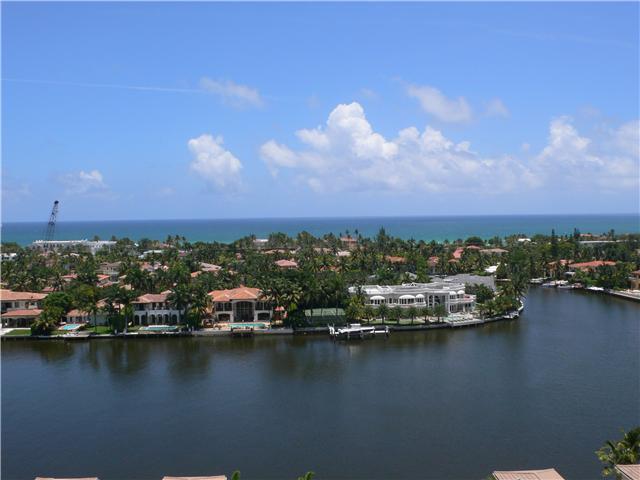 Fabulous NE corner 2 bed+den/3rd bedrm, 3.5 baths. Best line in the Best bldg at The Point. Private elevator w/ double foyer. Crema marfil marble flrs, carpet in bedrooms. Surround sound in the living rm, built in bar, electric shades in all rms, great kitchen with granite tops, built-in double oven w/microwave. 9 ft. ceilings w/ crown molding. Full laundry rm with sink. Built in custom closets thru-out. All marble baths. Wrap around terrace w/ view of the intercoastal and ocean. Hurricane shutters.
