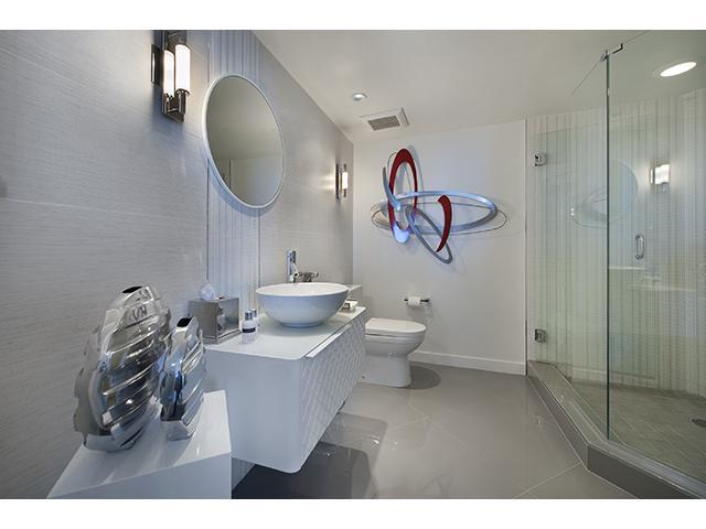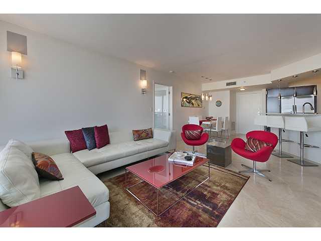 Beautifully renovated 2/2 at Sunset Harbour South complete with 2 assigned & deeded parking spaces! Just bring your toothbrush! Newly designed bathrooms provide luxury and functionality with dual sinks in the master and large walk-in showers. New kitch en boasts under cabinet lighting, large sink, new stainless steel appliances and wine cooler. Wood flooring in bedrooms. Double balcony accessible from living areas and bedrooms. Built-in sound system in living area. Frosted glass doors throughout.
