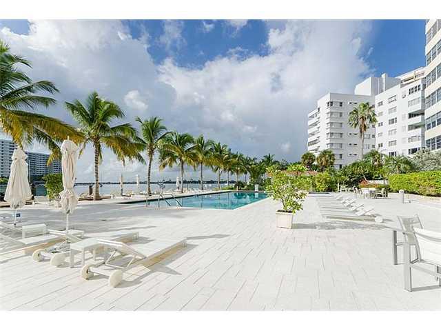 Enjoy Belle Isle living at its best in this oversized 1 bedroom, 1.5 bath with stunning wide bay views. This updated unit features limestone flooring, open kitchen, marble baths, custom closets, impact glass in living room and approx. 1000 sq.ft of living area. (per owner) just steps from the Standard Spa and close to Fresh Market, Lincoln Road and a short drive to downtown Miami. This full-service building includes doorman, assigned parking w/valet for guests, heated pool, Jacuzzi, gym, tennis and more!