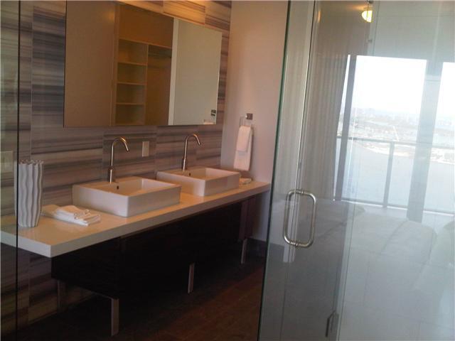 Beautiful 2/2.5 unit with amazing city & direct bay views. Designer kitchen with Viking appliances , wood cabinetry, quartz countertops and floor to ceiling glass windows. Private elevator. Great amenities include a Spa, 2 pools, fitness center, yoga/pi lates room, hotel concierge, restaurant & lounge, 1 parking space.24 hr doorman and concierge. Walking distance to AA & Performing Arts.