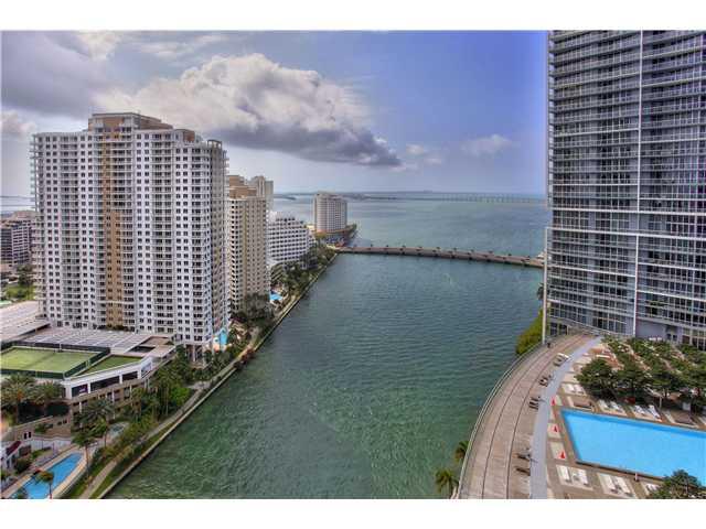 Gorgeous views of Biscayne Bay, Miami River, Brickell Key , Key Biscayne , S. Beach and the ocean beyond!!Spectacular views from every bedroom and living areas. Very spacious 3/2.5 with white , modern porcelain floors, all top of the line Wolf appliances , SubZero fridge, separate shower, whirlpool in Master bath. Enjoy one of Brickell's chicest buildings and it's great amenities. World renown spa, pool area, gym, restaurants, movie theatre and more!Lamps in Dining/master bedr are excluded from the sale.
