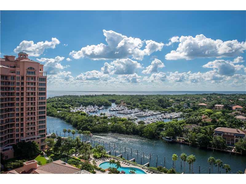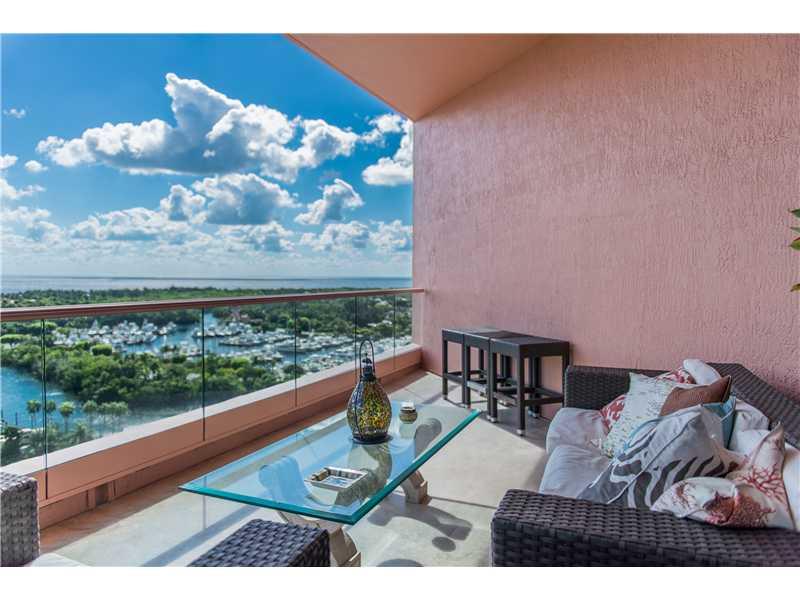 Spectacular & coveted "F-line" penthouse in the exclusive Gables Club. Enter from your private elevator foyer into light filled living spaces w/volume ceilings & walls of glass that provide breathtaking views of Biscayne Bay, Key Biscayne & the downtown skyline. Expansive master suite w/ luxurious marble bath & private terrace. Five-star building amenities inc. lighted clay tennis cts, fitness ctr, lap pool, marina, putting green, private club with restaurant & room service and 24 hr security.