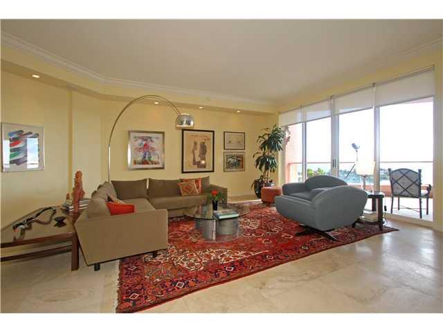 This beautifully appointed, seldom available "E" line on a high flr gives one breathtaking views of Biscayne Bay, Atlantic Ocean, Key Biscayne & downtown Miami from the minute one steps off the private elevator & into the expansive living & dining rms, on into the breakfast rm & kitchen. A balcony stretches out from all these rooms & creates large areas for dining & entertaining. Den converts to the 3rd bedroom. This very secure complex is well maintained & a favorite of many Miamians.