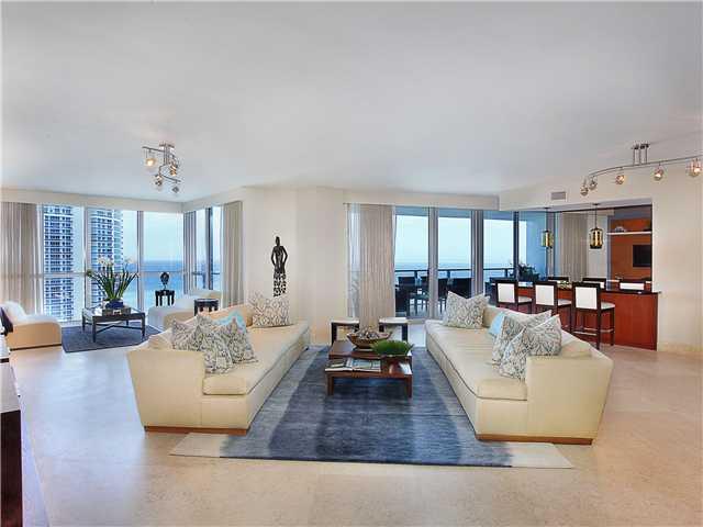Enjoy breathtaking direct ocean and intracoastal views from this most desirable 4110 sq.ft residence in the sky at the 5 star Ocean Palms! This residence is appointed with uber exclusive, Adriana Hoyos furniture, fabrics and objects of art.Featuring priva te elevators,oversized balconies on the north and south invite all to relax and a master suite with two marble bathrooms! This home offers marble floors,private theater, Snaidero kitchen with Thermador,Subzero and Miele appliances, two spots,pet friendly.
