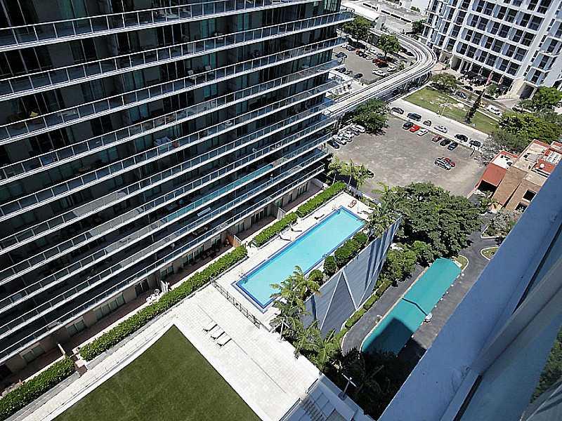 Reduced almost $45k from original list price. Spectacular unit in the Axis on Brickell south tower. Glass walls in living room and bedroom step out onto a glass balcony overlooking the expansive pool deck and lawn. Carpet floors. Rented at $1600/month unt il March 2014. Showings by appointment with tenant.