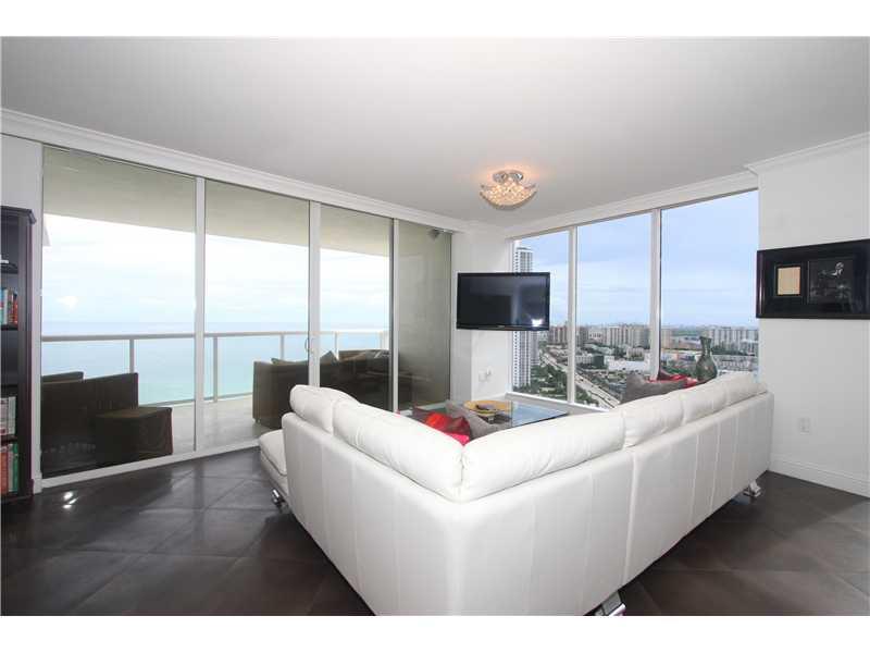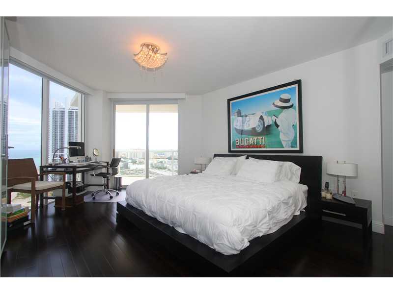 Beautiful 2BR plus Den/2.5 bath corner unit with pricate elevator, panoramic direct ocean views with 2 large balconies. Floor to ceiling windows with Hunter Doughlas window treatments throughtout, porcelain flooring in the living room, wood in bedrooms. Closets beautifully done. Modern kitchen, designer upgrades, resort style amenities include heated pool, gym, sauna, tennis ct, lounge room. 5 mins away from Aventura and Bal Harbor.