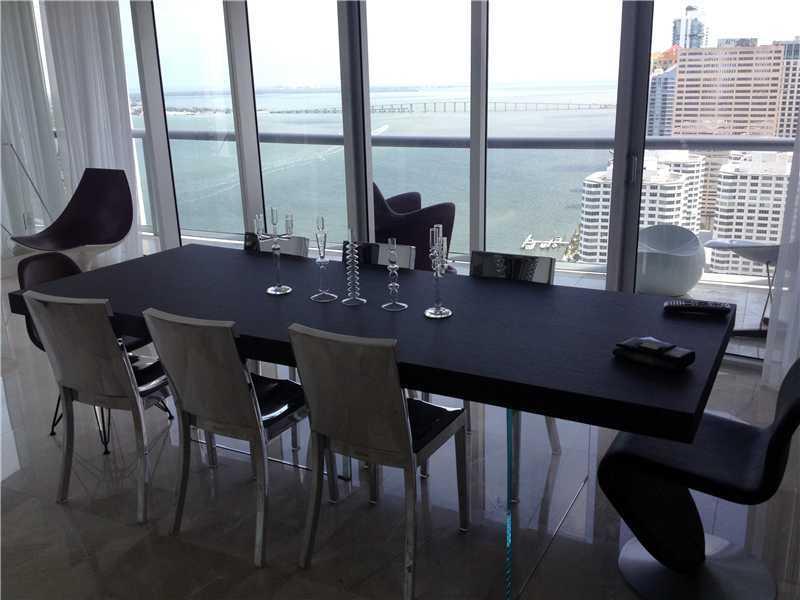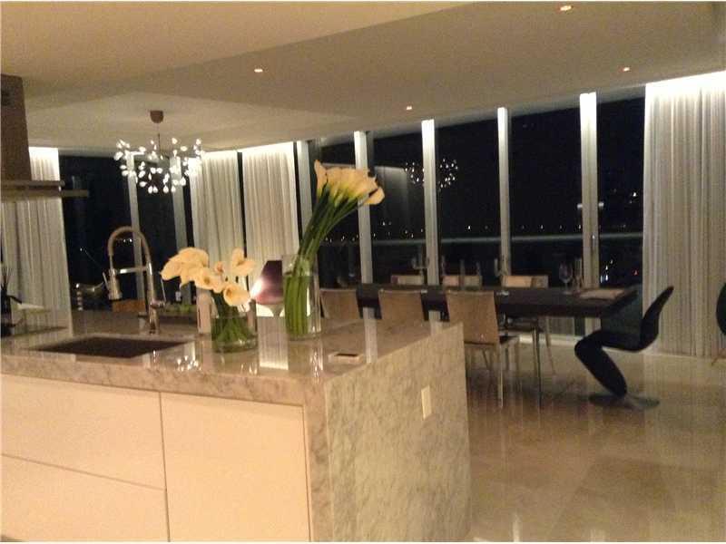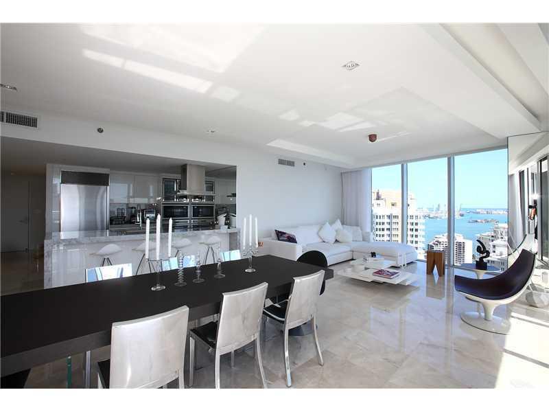 Stunning turnkey corner unit with panoramic views of Biscayne Bay, city lights and Miami Beach. Mooi & Tom Dixon lighting, Viabizzuno light system on entry wall, marble floors, all new doors, electrical shades, Carrara marble kitchen, and shelving in ever y BR ++ 2 PARKING on 4th & 10th floor.