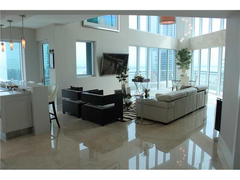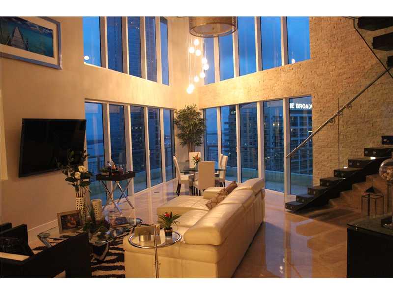 Stunning, custom built, "intelligent" home, 2 story corner unit, wraparound balcony w/ panoramic views of the Miami skyline, city & bay from every room. A one of a kind layout, not another one like it in the building. Owner spared no expenses in remodeli ng the entire unit with top of the line finishes & European appliances also relocating and converting the staircase into a "state of the art" masterpiece. For "before" pictures please go to "Attachments" section.