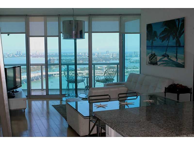 Breathtaking and unobtrusive 90 degree ocean, bay & city view from this 2/2.5 condo on the 40th floor & in the most desirable line (09). Floor to ceiling impact resistant windows, Italian cabinets with stainless steel appliances & granite counter-tops. Wo od Floors throughout. Bldg includes unbelievable amenities: conference room, private cyber center, state of the art business equipment, 24 hour security, concierge, & valet services, beach volleyball, game room, indoor-outdoor sky lounge fitness center.