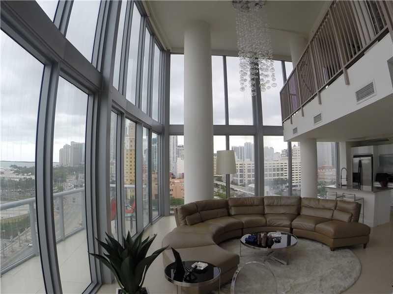 Spectacular & Chic Xtra large 1BR & 1.5 BA 2-story corner loft in exciting bayfront downtown Miami! Full of light, the stunning 18ft glass walls offer panoramic views of the bay, AA Arena, new Museum Park & downtown from all rooms. The loft is beautifully decorated and features: porcelain floors, a 2nd floor master BR overlooking the 2-story living/dining area below, a granite & SS kitchen & ½ bath. The huge master bath has 2 sinks, tub & large shower. Amenities include 2 pools, gym, volleyball & more!