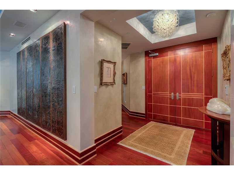 Elegant high amenity living! Spectacular ocean views abound in this NE corner custom designed luxury unit. Exquisite design features include grand foyer entrance w/private elevator, Brazilian hardwood floors, custom designed doors, built-in furnishings, V enetian plaster walls, tray ceilings. 4 bed/6.5 baths plus staff room. Bedrooms #3 converted to office, #4 converted to media room, may be converted back to bedrooms. Crestron Technology System & Lutron Lighting. Sold unfurnished. Built-ins included.