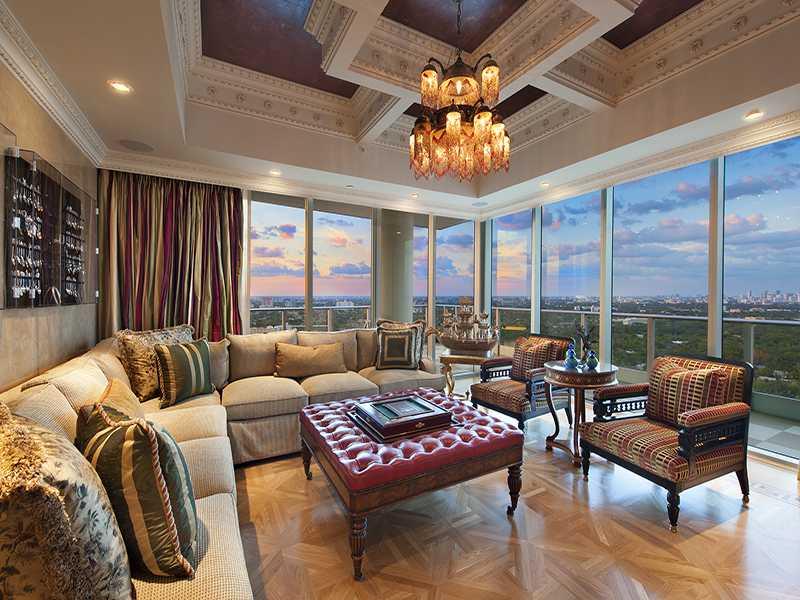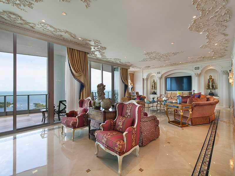 Luxurious Coconut Grove penthouse with breathtaking views from this 5BR/7.5Bath residence at the Grovenor House. This elegant penthouse has 6,970 interior SF of living space, appointed with the finest finishes. 36 X 36 Crema Marfil flooring, custom Mosai c by SICIS, Snaidero kitchen, Miele appliances, Bathroom Fixtures by Sherle Wagner, Lighting by Barovier & Tosso, 11ft ceilings, private elevator entrance. Full service building with full amenities, plus 24-hour valet, security and concierge.