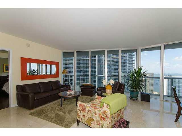 Spectacular 2B/2B Unit on the 49th floor of Icon Brickell T2.Unit features a large balcony w/ spectacular views over the Bay and Ocean. European Kitchen w/ top of the line SS appliances, marble floor in living areas and hard wood in bedrooms and walk-in c losets.Enjoy the incredible resort life style this bldg offers with a theater, gym, luxury spa, infinity pool & gourmet restaurants Unit is in very good condition and priced to sell! Special Financing Incentives available from SIRVA's preferred lender