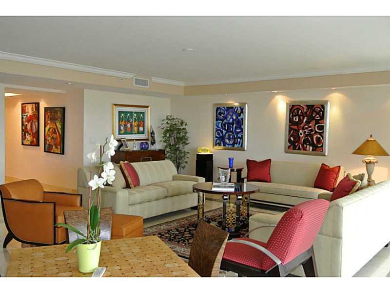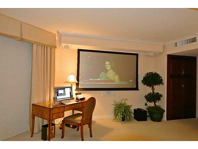 Best unit in complex, exquisitely decorated, marble floors, carpets in bedrooms, unobstructed view of beach and bay. Master suite has a custom made $60,000 walk-in closet and a set up for a home theater with a drop down screen and surround system througho ut the unit. Brand New Poggenpohl kitchen cabinets and top of the line appliances and fixtures. Electric Hunter Douglas shades with remote control in living room, family room and master suite.