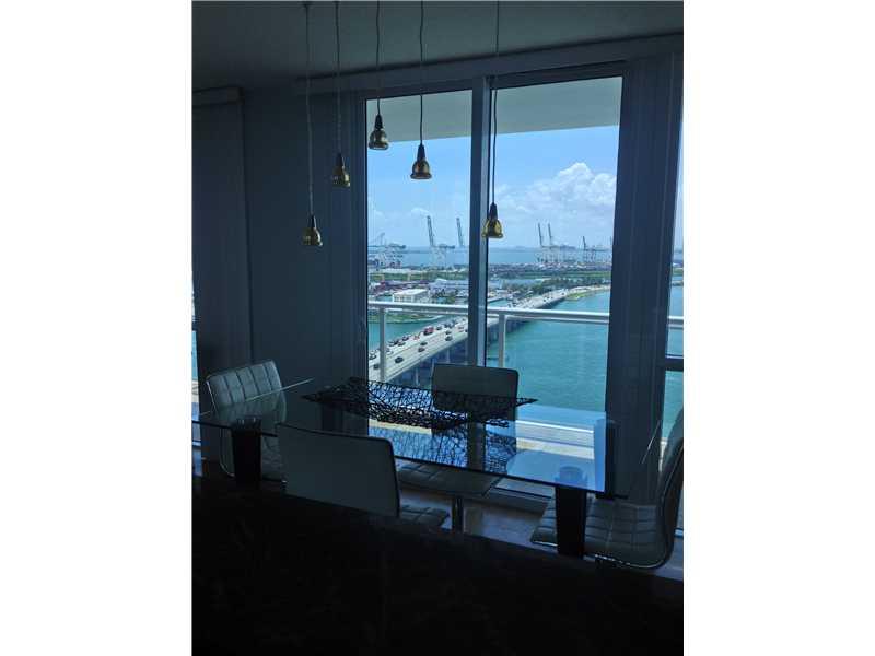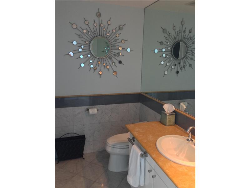 Unobstructed views of Star Island, Biscayne Bay, & Downtown Miami. This 1 bedroom + den 2 bath residence features a 40ft wide balcony. The kitchen features a Sub-zero refrigerator, Gaggenau oven & stovetop, granite counter tops, & built-in steamer. A form al dining area. The master bedrm has direct entryway to terrace. The den may easily be used as a second bedrm. Marble flrs throughout. Master bath offers separate roman tub & shower. Valet parking, pool, hot tubs, gym & restaurant. Publix is 1 block away.