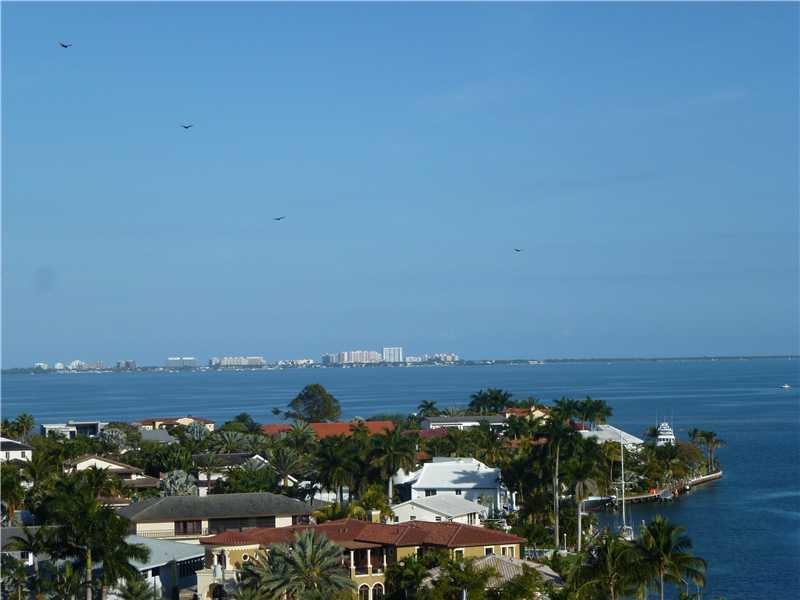 Set in the sky! Be mesmerized the moment you enter this 9th flr condo w/clear views of Coconut Grove, Downtown Miami, Miami Beach & Key Biscayne. Entertain in the large, open living & dining rm area or family style in the white kitchen w/black granite cou ntertops. Marble flring throughout public spaces. An en-suite, private bdrm & bath, an open family den + master bdrm suite w/the addition of a separate ofc. The Gables Condo is on 10+ acres w/private restaurant, spa, exercise rms, heated pools, tennis+