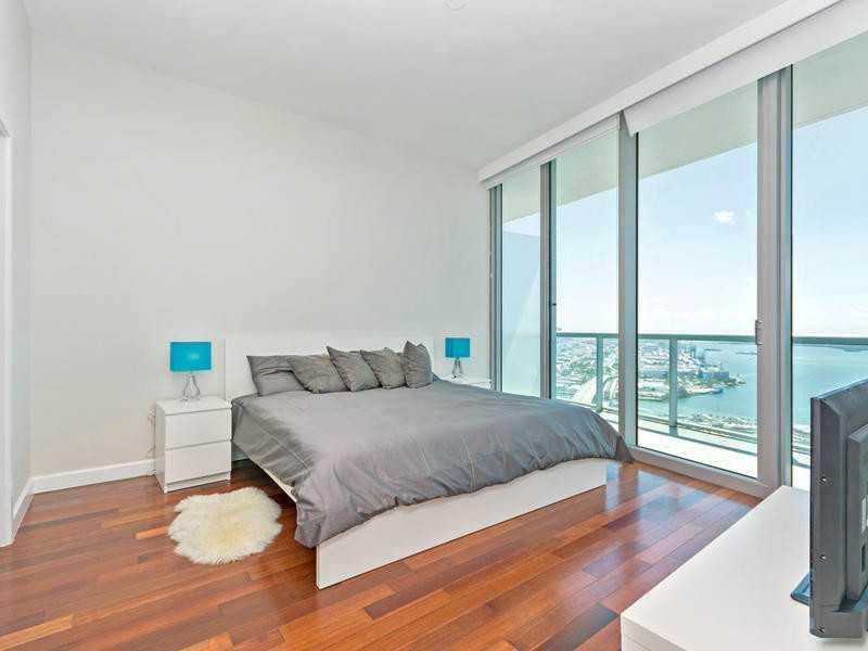 Stunning direct and obstructed view from the Living and Master Bedroom at the 48th floor; overlooking Biscayne Bay, Downtown Miami City Lights and Miami Beach. Top of the line excersice room and pool area which includes a beach volleyball court. Califor nia closet in the master bedroom, blackout shades, stainless steel appliances. wood floors, etc.