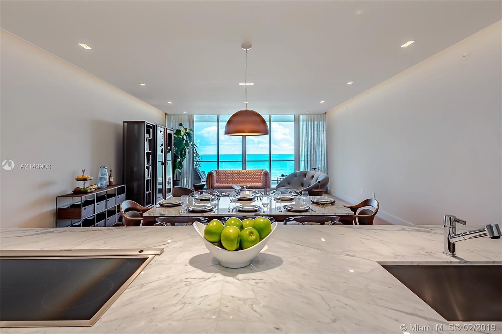 A private elevator opens up into this 4/4.5+Den. High ceilings, floor-to-ceiling glass & 10' deep terraces with direct ocean views. Open gourmet kitchen with sleek Poggenpohl cabinets, Gaggenau & Sub Zero appliances. Wood floors throughout. Signature amenities include beachfront infinity pool, library/lounge, fitness center, beach service, 24 hour valet, concierge and security. Architect: Enrique Norton.