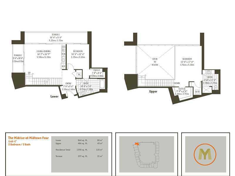 NY-Style loft with double height ceilings in coveted 4Midtown. This two bedroom/two bath corner duplex features exposed concrete ceilings and ductwork to give it an authentic warehouse feel. Residence features floor-to-ceiling glass, Jenn-Aire stainless s teel appliances and multiple terrace overlooking the city. You will love the convenient Midtown lifestyle with everything from amazing restaurants to luxury and everyday retail right at your doorstep.