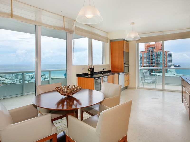 Imagine true luxury living - Rarely available Murano Portofino 02 line, on 34th floor - 3 bedrooms, 3.5 baths, 3 balconies in 2618 sqft! Stunning 330 degree views of the ocean, bay, downtown, Miami Beach & Fisher Island, enjoy the sunrises & sunsets. Watc h the cruise ships pass below your balcony! Fantastic flow-thru design. Featuring floor to ceiling windows, 700+ sqft of balconies, private elevator lobby. True luxury resort living in South Of Fifth area of South Beach w/ spa, tennis, pool, & beach club.