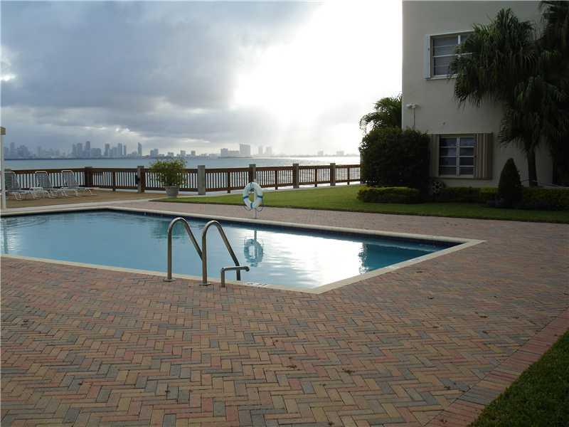 Gorgeous sunsets & direct water views in well established courtyard 3/2 condo. Large and camera monitored lobby, big & impeccably maintained garden with pool & deck facing the Bay, downtown Miami, South Beach, & Port. Apartment features 3 full bedrooms, t iled floors throughout, huge walk-in closet, and lots of closet space. Views of the Bay from living room & bedrooms. Excellent residential neighborhood, assigned parking, and affordable HOA fees. Enjoy island living at a great place.