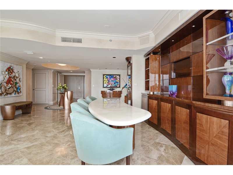 Priced to sell, this magnificent Southeast corner has one of the best floor plans in Sunny Isles. The panoramic views are also the best in the area: ocean, lake and city. Used only as a second home, this beautiful unit is in impeccable condition and read y to move in. Three bedrooms in--suite, and a powder room, this 2864 sq.ft. is accessible by private elevator. Marble floors throughout, high end built-ins made with exotic woods, onyx bar, elegant Murano glass light fixtures and more.