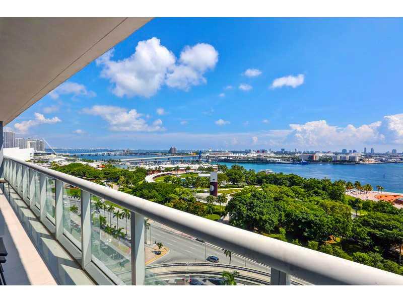 Amazing 2BR, 2 BA + large den with spectacular unobstructed views overlooking Biscayne Bay & Bayfront Park. The spacious den can be converted to additional guest room. Contemporary design featuring white porcelain floors, SS kitchen, enormous balcony (w/a ccess from both bedrooms and living area) & master bath w/ 2 sinks, separate tub/shower. Amazing pool deck, and large gym, etc! Walk to everything - sports, dining, parks, museums, shopping. The perfect 15th floor height to enjoy your fantastic balcony.